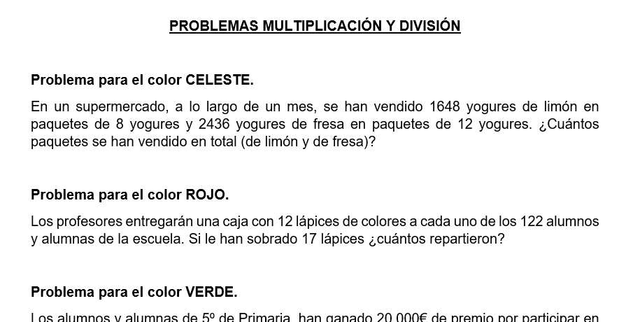 Matemandala: Problemas de multiplicación y división